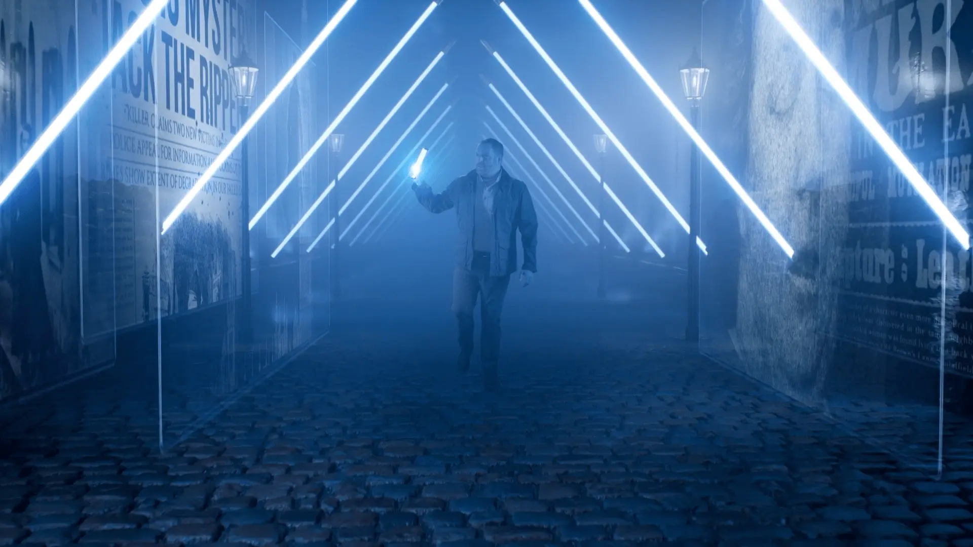 The opening sequence required a creative approach to bring the “corridors of time” to life. Josh Gates was filmed walking on a green treadmill surrounded by green screens, allowing Pixeldust to craft an abstract, shifting hallway of history in post-production. Collaborating closely with Ping Pong Productions, we employed strategic lighting, synchronized effects, and multiple camera angles to ensure a seamless composition. The video comparison displayed here showcases the transformation from raw green-screen footage to the final, polished sequence.