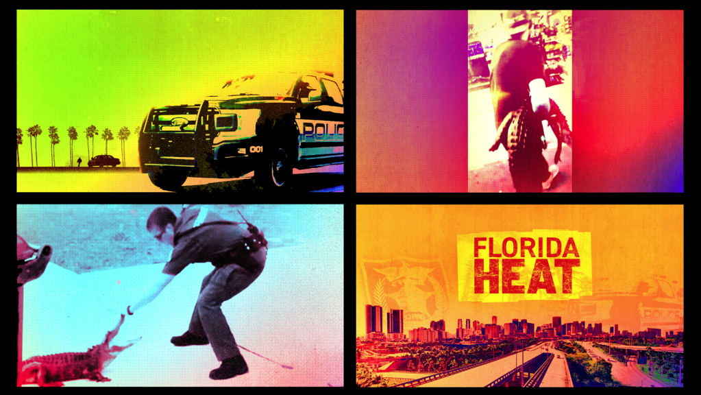 This piece serves as the cornerstone for the stylistic approach of all the in-show graphics. Bright, boldly colored backgrounds highlight the lively parts of Floridian culture from gator country, to swamps and suburbs. The simple, complimentary colors are punctuated by the heavier imagery of police apprehending criminals, which are inspired by real encounters on the show. All of this is combined in a 2.5D parallax look, allowing the scenes to flip from one to the next as if it were a pop-up book. The open sequence ends with a sizzling hot title revealed over a picturesque Florida beach. Stay tuned for the full title sequence and more information on the premiere of Florida Heat!