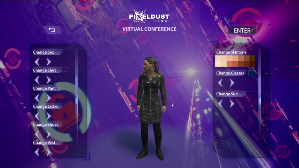 Our world has been changing in the past one year and new ways of living and interacting have started to become a new norm. COVID restrictions and lockdowns are making it difficult for people to interact in public spaces like we used to at conferences, retail stores, museums, concerts and other types of events and venues. A critical safe bridge is required between the users and these activities so they can be accomplished virtually in its best real world form as possible. The Pixeldust virtual pilot experience has been engineered to bridge this gap and facilitate people around the world to start engaging and experiencing all above activities in a safe and efficient manner, in the comfort of their home or any other location around the world. At its core, its a webgl/browser based experience made with Unity and accessible across any windows and mac browsers on desktops. It is also easily adaptable to a VR headset experience using Oculus or other platforms. Creative Director: Ricardo Andrade Head of Development: Samar Shool The Technology features: It’s an initiative to feature virtual meetings by recreating a conference world and exploring the different ways and means to interact with vendors and other attendees. Before entering the virtual space, users have the ability to customize their virtual avatars to their liking or pick from pre existing ones that match their profile. Users are able to customize clothing, accessories, gender, race and many more elements.